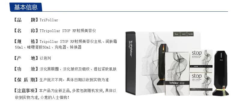 原装国际版 TriPollar STOP 家用童颜机 去皱紧致射频电子美容仪,批发价:1500元/套, 至少十套起批;我们承诺:仪器自购买日起(凭票据)主机免费保修一年,配件免保三个月,如果您的产品在保修范围内,出现产品质量问题,只需寄到我们的发货点,我们直接从现货里寄全新的给您,无需等待!!超过保修期应收取适当零配件及消耗品费用,如需补充或购买,请与我们联系。手机:13817404285 QQ:3367782878赵文才先生、王晓娜女士