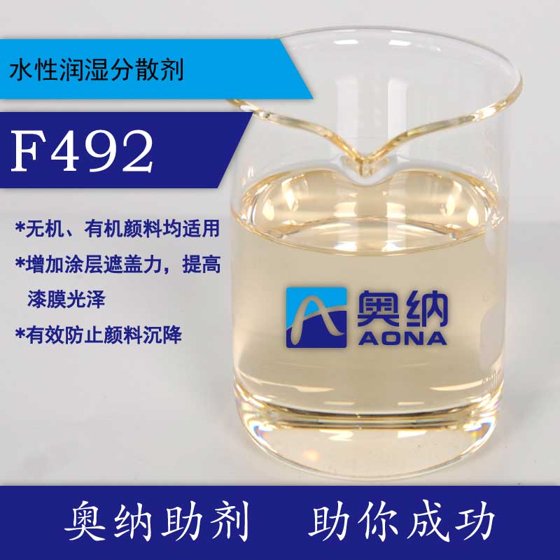 水性涂料用湿润剂分阴离子型和非离子型。 湿润剂和分散剂配合使用能取得理想的结果。湿润剂的用量一般为千分之几。其负作用是起泡和降低涂膜的耐水性。 水性润湿分散剂F492高性价比,对无机与有机颜料均有良好分散性。 *润湿性强,显著降低漆料粘度,缩短研磨时间。 *增加涂层遮盖力,提高漆膜光泽。 *有效防止颜料沉降。 分散剂适用范围:乳胶漆,造纸,胶水,界面剂等。 注意事项:先把分散剂加到水里,充分分散均匀后再加颜料。 包装规格:25KG,50KG,200KG 储存:*远离热源,火源,避光保存。 *未完全用完前,每次使用后须盖紧桶盖。 注意事项:使用前请仔细评估产品与体系的相容性。 佛山市奥纳聚合物有限公司 联系电话:18520937993陈小姐 公司网站:www.tuliaozhuji.cn