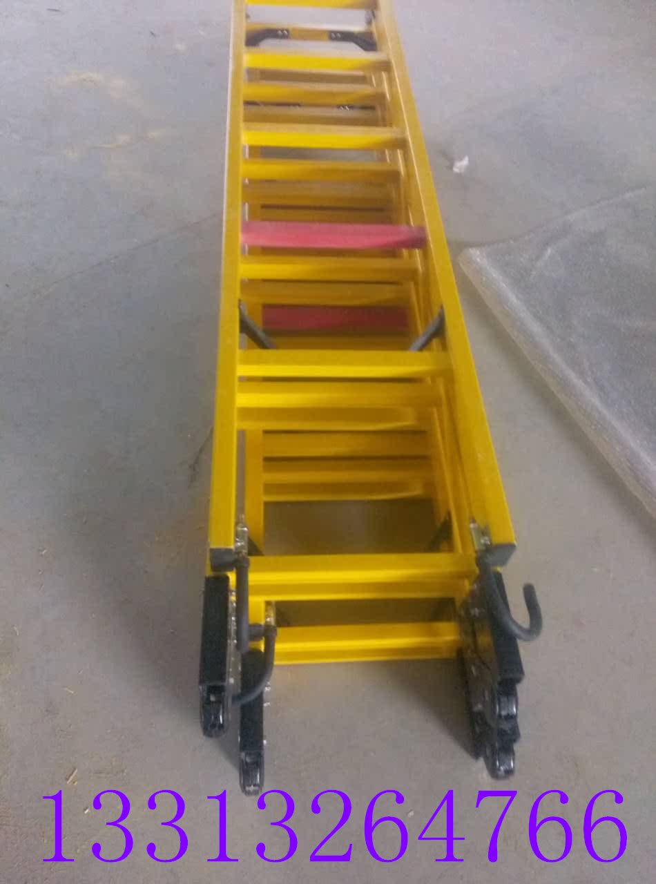 梯车(车梯)选用专用高强度绝缘材料制造,型材截面设计合理,重量轻,车梯底架用钢管制造,保证底架的稳定性和安全性,不变形。车轮为高强度稀土尼龙轮强度高、运转无噪音、绝缘性能好,其中有一车轮镶嵌钢环,解决安全接地问题。