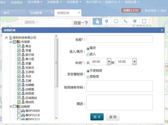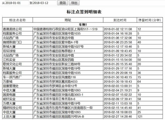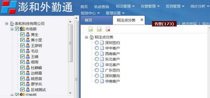车辆实时位置考勤系统 车辆位置考勤系统概述 “车辆位置考勤管理系统”,彻底解决目前车辆管理的种种问题。结合GPS卫星位置技术,GIS地理信息技术(电子地图),GPRS无线通讯技术,分布式服务器技术,互联网技术等高科技技术,实现了车辆24小时全天候监控,高密度记录车辆行驶数据,多点多渠道同时监管车辆等功能,对各种不良的驾驶行为及管理漏洞进行有效的实时监控及事后稽查,为企业节省车辆开支费用明显,提高运营效率,收到经济及管理的双重效益。 澎和科技于2009年推出了自身研发的“澎和外勤通”,以在线运营的模式(即SaaS模式)提供在线位置服务。基于“澎和外勤通”,结合交通运输行业的特点,发掘汽车智能管理的需求,澎和科技推出了基于GPS、GIS、GPRS技术的车辆智能管理系统——“澎和外勤通车辆平台”。 图1 澎和外勤通功能框架图 车辆实时位置考勤系统介绍 用途概述 澎和外勤通作为澎和科技自主开发的自有位置系统,用途广泛,几乎涵盖了整个社会层面。 交通工具位置与跟踪:对汽车、货运车、出租车、探险车队等进行跟踪位置,计算距离; 安全监护:对家人、朋友、未成年人、及特殊人群的位置查询; 人员考勤和考核:可以对用于企业和政府外出人员实行位置和跟踪,并获取现场位置标点等等; 货物位置:在港口、码头、大型仓储区的货物位置,实现对货物进行位置和统计; 商业查询:可以对用于查询邻居饭店、饭馆、医院、商店等等; 新闻事件和人员位置:可以位置报道新闻事件的准确位置,对突发事件、环保事件、城管部件、执法人员、等进行位置和跟踪,获取现场位置标点,并进行案件分析等等; 管道线路维护位置:位置石油管道、电缆、光缆、高压输电线等户外管线的故障位置; 平台主要功能 地图功能 澎和外勤通车辆平台兼容了四种完全不同体系的地图:百度地图、高德地图、谷歌地图、谷歌卫星地图;涵盖了全国346个城市或地区,满足绝大部分用户各种浏览、操作习惯。 地图标注:直接在地图上标注出关注的地点,通过标注点,可以使终端设备到达、离开标注点范围都作出详细的统计数据表。所标注的地点以及关注的区域可以随时在地图上显示或隐藏,成为一款为自己量身定做的电子地图。 对于使用客户,支持定制自身的将客户位置、供应商渠道、重点区域等信息图,可以作为渠道联络的统计数据,如车辆签到记录、车辆签到明细、标注点签到统计等数据表,对管理起到相当有效。该功能打造了一款量身定做的电子地图,对业绩分析、任务制定、全国布局等需求有了一个自己专用的活地图。 图2 标注点显示图 地图测距:可在地图上使用测距功能,使你的出行对路程、时间更易于掌控。 图3 地图测距显示图 实时位置 实时位置:澎和外勤通车辆服务是利用GPS位置技术对终端设备进行位置的一种位置系统。车载终端终端机全方位24小时进行位置。 位置图标:通过箭头图标表示为车载在地图位置的实时显示,并通过箭头图标颜色的差异表示车载终端设备的运行状态。 图4 实时位置功能界面 绿色图标:表示为车辆正在行驶状态(ACC状态为:开),位置信息获取及上报服务器正常; 图5 车辆位置绿色图标显示图 黄色图标:表示为车辆处于停车静止状态,发动机启动运行中(ACC状态为:开),位置信息获取及上报服务器正常; 图6 车辆位置黄色图标显示图 红色图标:表示为车辆处于停车状态,发动机熄火状态(ACC状态为:关)。位置信息及上报服务器获取正常。 图7 车辆位置红色图标显示图 轨迹查询 轨迹查询:自动记录并可随时查询历史活动轨迹。描述车载终端设备或者是车载终端的名称、时间及当时所在位置信息。服务器保存不少于90天的轨迹信息,提供查询和下载。 轨迹详情:详细描述车载终端设备每个位置信息的时间、ACC状态、行驶速度、详细地址。 图8 轨迹查询功能界面 轨迹回放:按时间先后,以动画形式回放真实轨迹,查看终端设备在某时间段的移动轨迹,行动路线一目了然,支持轨迹下载。 图9 轨迹回放动画演示图 轨迹下载:支持将轨迹以Excel表格形式下载到本地存档,服务器保存不少于90天的轨迹信息,提供查询和下载。 标注管理 标注点分类:可将地图的标注点进行分类管理,设置相应的类别,便于查看及管理。 图10 标注点分类界面 标注点:即可以用手机实地直接将兴趣点标注,也可以在平台地图上标注出关注的地点,可以添加、修改、删除数据,并且以地图的形式作展示。 图11 地图标注显示界面 区域管理(电子围栏):采用多种区域告警设置,可以自定义设置定点、矩形、圆形、多边形的告警区域,也可设置偏航告警。 图12 区域告警功能界面 告警提示:可以设置终端设备的进入或离开的告警,同时可以设置告警提示方式,除平台告警提示外,也可以采用手机短信的告警提示。 图13 告警提示设置界面 实时签到 实时签到:只适合安装了澎和外勤通手机客户端软件的智能手机。 统计分析 远程考勤:可以设置终端设备运行的开始和结束的时间,查看设备数据上报情况。车辆位置是24小时全天候位置模式,详细描述了开关机时间、程序的开启或关闭的时间。所有数据支持导出Excel表格下载保存。 图14 远程考勤表 位置明细:详细描述了终端设备位置信息数据,记录位置信息的具体时间、地址、速度、距上个位置点距离、以及在位置点的停留情况。所有数